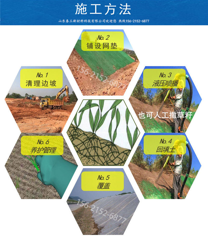 (1)铺设 将三维植被网沿坡面由上至下铺于坡面上,网与坡面之间保持平顺结合。